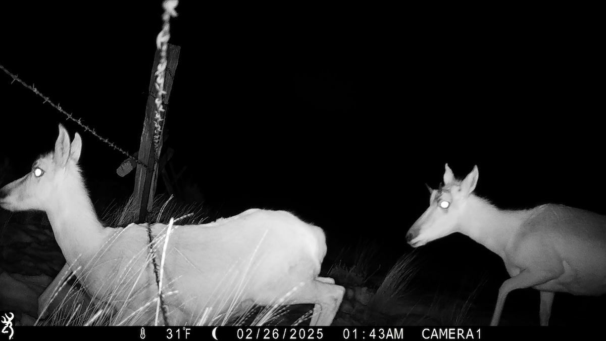 Pronghorn, like the doe shown here, may receive nasty injuries by scraping their back against sharp barbs when the wires are too low. This fence will be replaced with a wildlife-friendlier fence that has a smooth bottom wire 18" off the ground. Photo credit National Wildlife Federation.